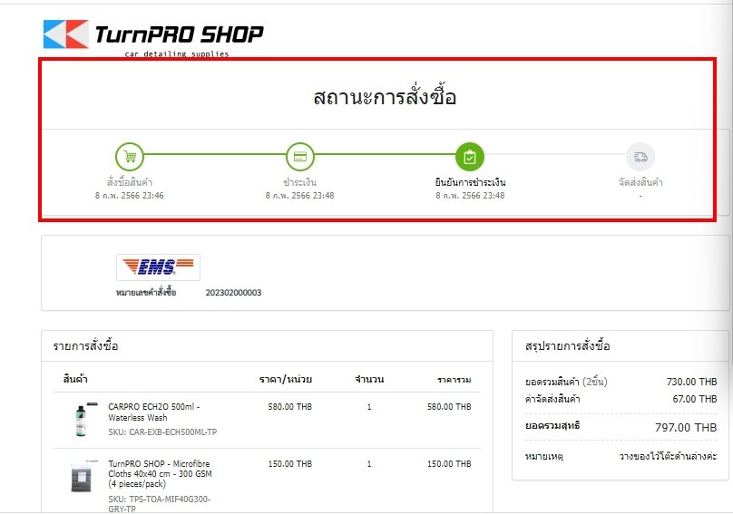 (เมื่อทำการสั่งซื้อสินค้าแล้ว จะต้องชำระค่าสินค้าภายใน 24 ชั่วโมง นับตั้งแต่ที่ได้สั่งซื้อสินค้า หากไม่ชำระค่าสินค้าภายในระยะเวลาที่กำหนด ระบบจะยกเลิกใบสั่งซื้อสินค้าดังกล่าวโดยอัตโนมัติ) - ลูกค้าสามารถตรวจสอบ สถานะการสั่งซื้อ และ การชำระเงิน ได้ที่ account ของลูกค้าที่ได้ทำการสั่งซื้อสินค้า แถบ "สถานะการสั่งซื้อ"