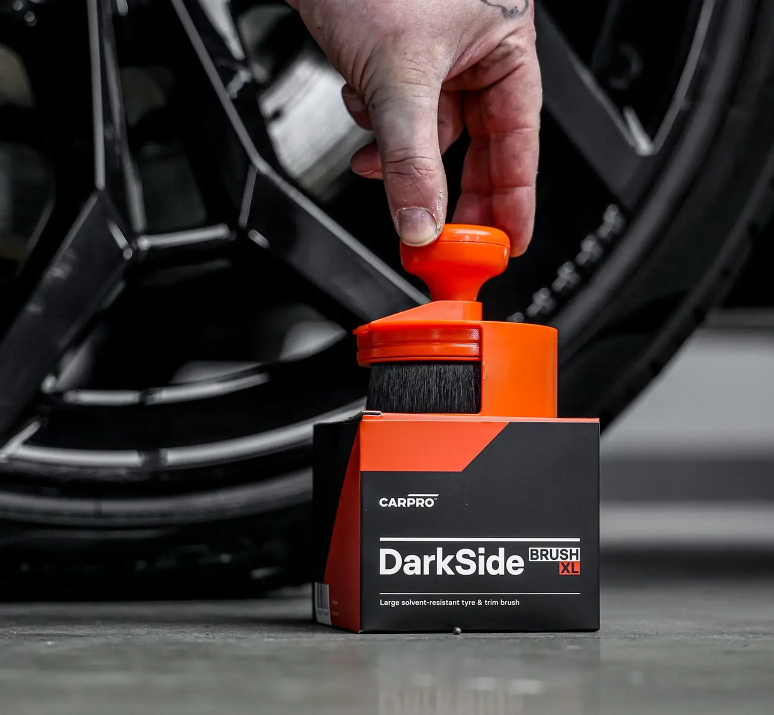 CARPRO DarkSide Brush XL is the perfect tool for applying DarkSide and other tire dressings. This Applicator Brush from CARPRO is designed to take your car detailing experience to the next level. Say goodbye to tiring application processes and welcome effortless precision with the DarkSide Applicator!